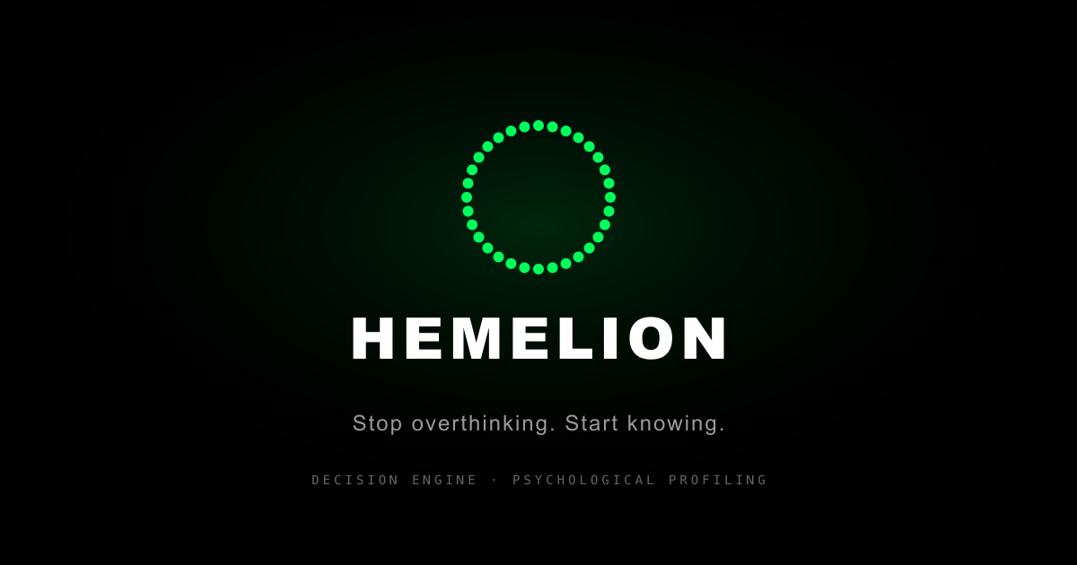 Hemelion combines rigorous analytics with clear, meaningful narrative to help you stop guessing and start knowing — whether you need decision clarity or deep psychological insight.